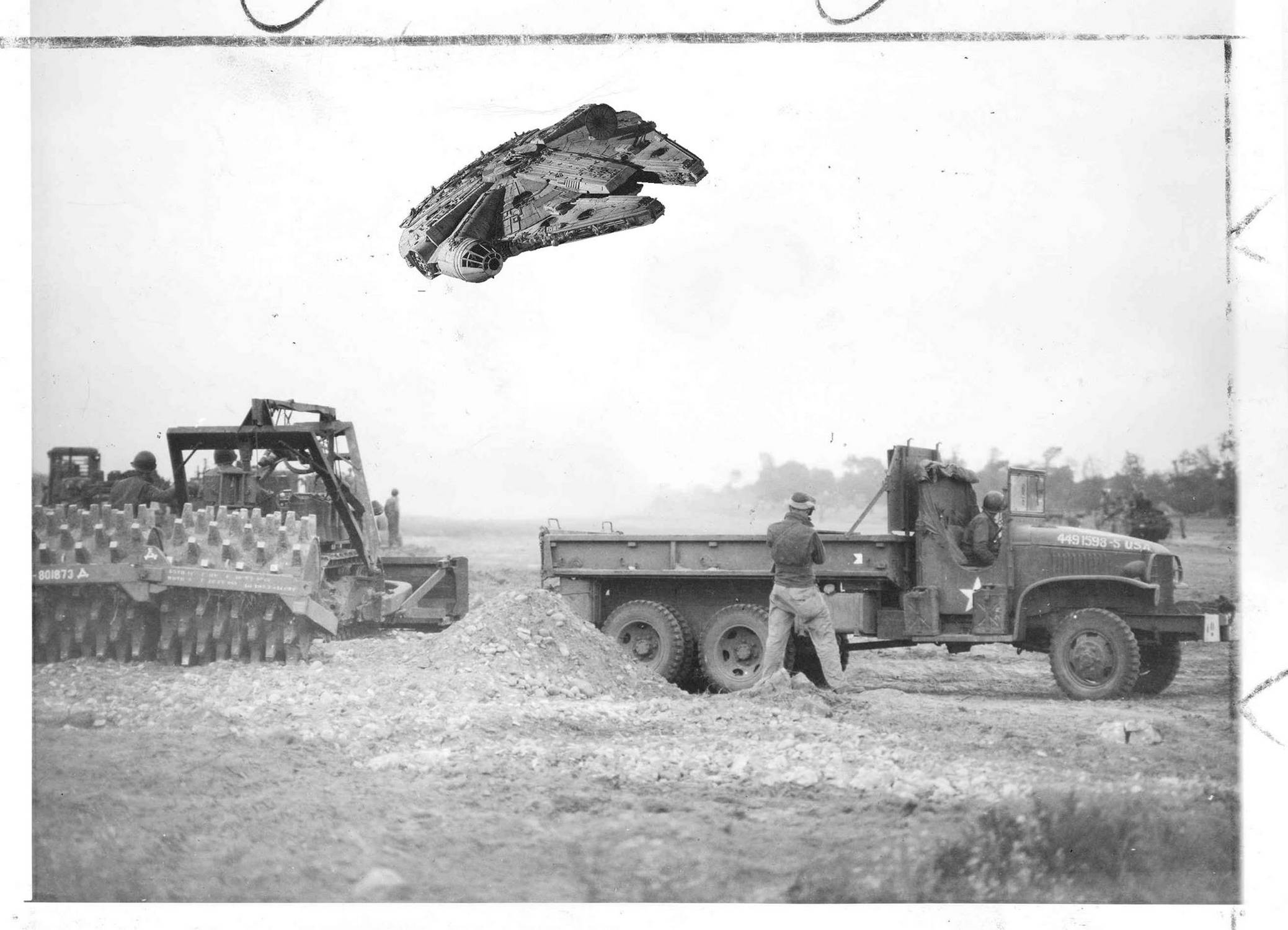 Il est ainsi possible de voir un faucon millénium survoler une zone de guerre. De découvrir Chewbacca au milieu d'un groupe de soldats, de se délecter d'un stormtrooper posant avec un GI devant la statue de Napoléon, à Cherbourg ou devant le Mont-Saint-Michel. Autant de clins d'oeils sympathiques rappelant une fois de plus que les archives, avec un peu d'imagination, peuvent aussi contribuer au divertissement !