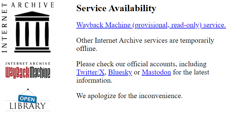 Le fondateur d’Internet Archive avait annoncé sur X la dégradation du site et la fuite des données personnelles avant de fermer l’accès et renforcer la sécurité de la plateforme. Malheureusement, ces mesures n’ont pas suffi puisque le piratage s’est intensifié pour toucher ses plateformes annexes OpenLibrary, la bibliothèque en accès ouvert et Wayback Machine, qui renferme les anciennes versions des pages Web.