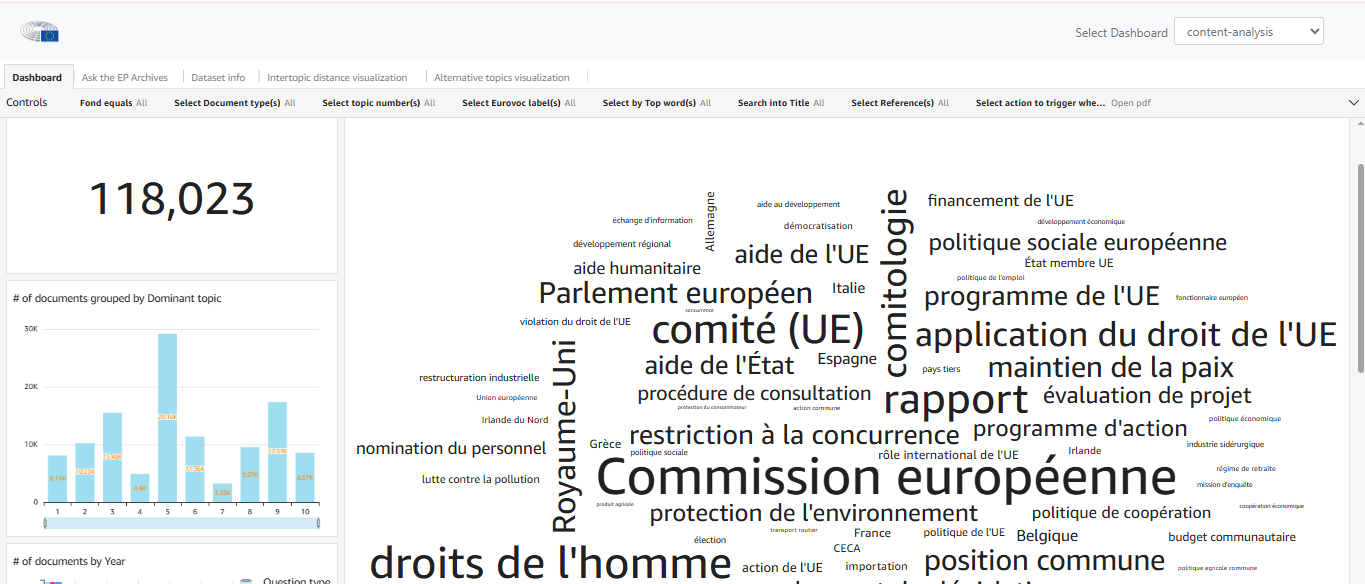 Ask the EP ouvre les portes de l’histoire politique européenne à travers des archives numérisées, en répondant à des questions directes comme "Qui était Simone Veil ?" ou "Que stipulait le traité de Maastricht ?". Pour l'utiliser, il suffit de cliquer sur "Select Dashboard : content-analysis" (en haut à droite) puis sur "Ask the EP archives". Le corpus de sources accessible concerne la période 1952-1994 avec les fonds de l'Assemblée commune de la Communauté européenne du charbon et de l'acier, l'Assemblée ad hoc et du Parlement européen, ainsi que les débats de 1999 à 2009.