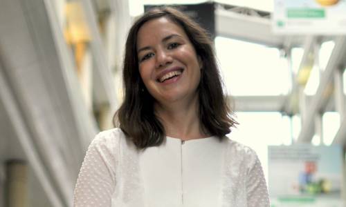 Portrait de Delphine Secret, qui après une licence en langues étrangères appliquées, une école d'interprétariat et un DESS en intelligence économique est aujourd'hui veilleuse chez ADP.
